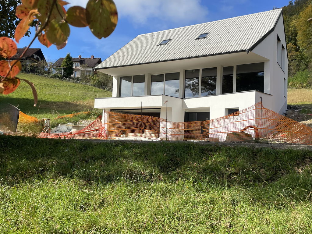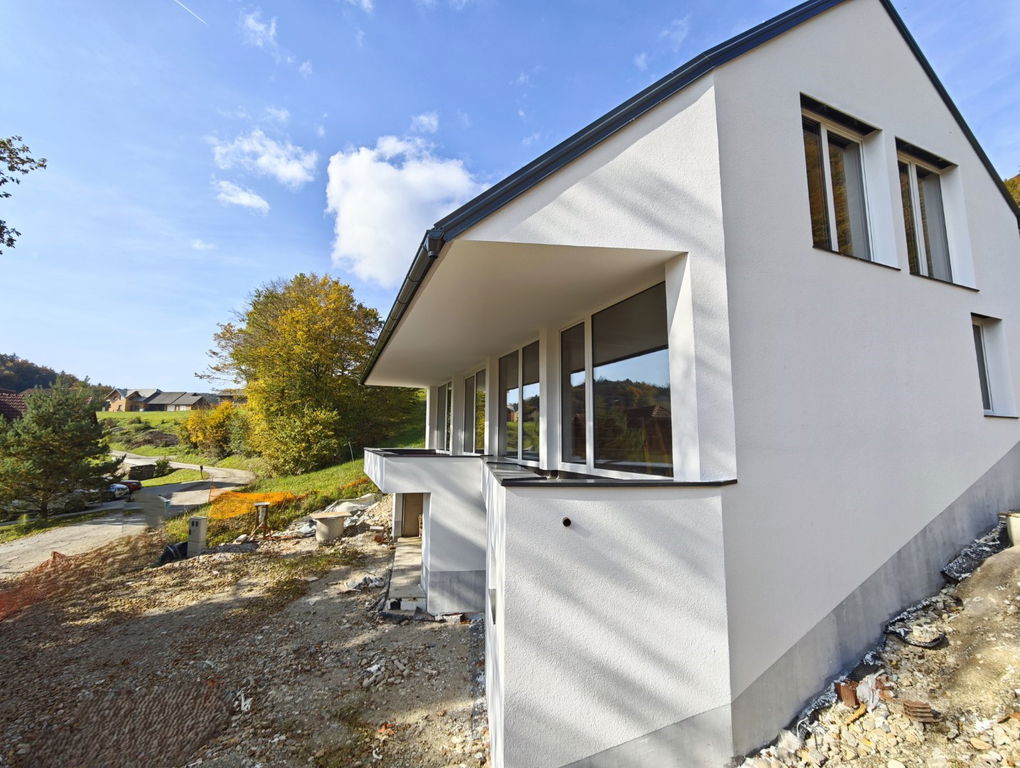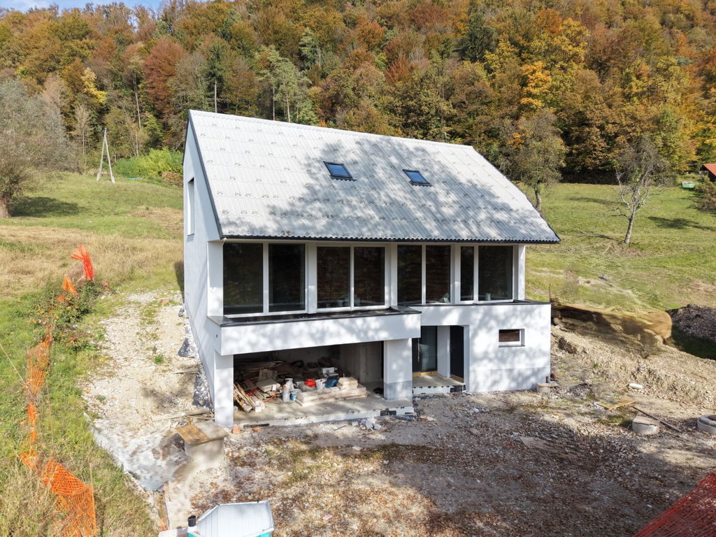 Stavba je zasnovano klasično, kot enodružinska hiša z modernim tlorisom, z veliko zastekljenih površin, ki nudijo povezanost notranjosti z zunanjostjo in razglede na čudovito naravo in dolino. Razprostira se v treh etažah, K+P+M. Hiša je grajena iz klasičnih opek in betona, klet je iz armiranega betona. Vgrajena bodo PVC okna – troslojna ter sekcijska daljinsko vodena garažna vrata. Fasada bo izolirana z 20 cm toplotne izolacije z dodanim zaključnim fasadnih slojem.