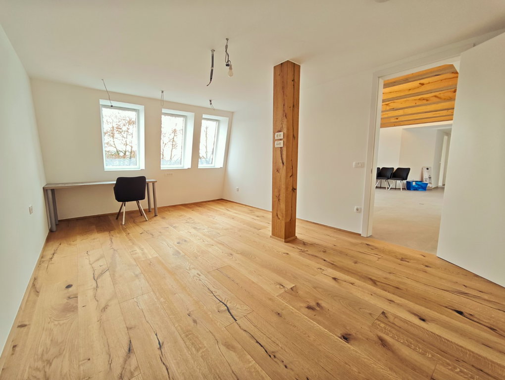 Poslovni prostor se nahaja v 2. nadstropju popolnoma obnovljene in energetsko učinkovite poslovne stavbe in obsega 120m2 uporabne površine. Sestoji iz velikega osrednjega prostora, treh ločenih pisarn/prostorov, dveh ločenih sanitarij in tehnično sobo oz. sobo za arhiv.