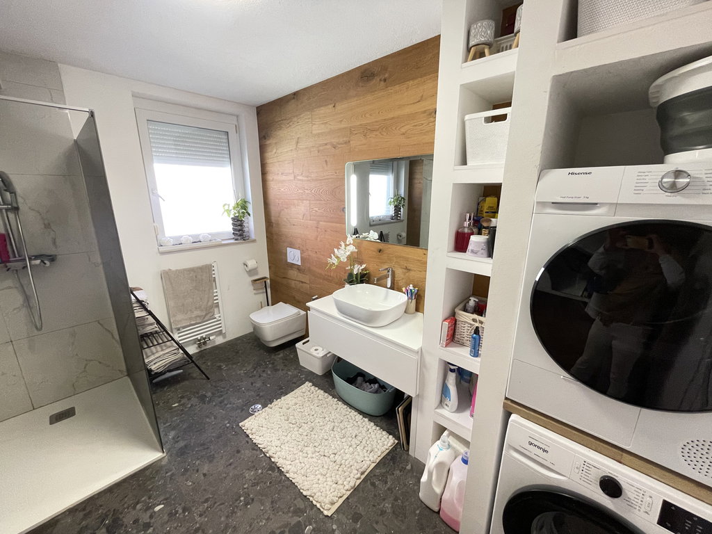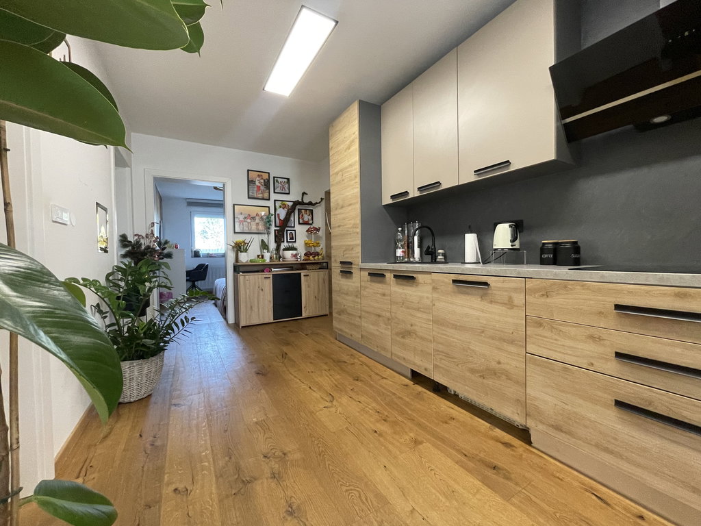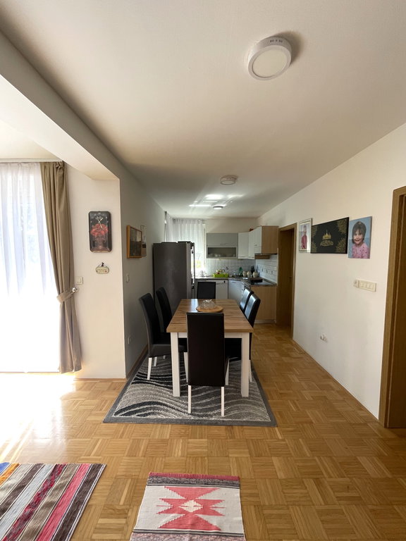 V pritličju se nahaja samostojno stanovanje (lasten vhod iz dvorišča), v izmeri 85,5 m2, ki je bilo l. 2023 v celoti prenovljeno (razen oken). Obsega zaprto ložo pred vhodom v stanovanje, velik dnevno bivalni prostor z ločeno kuhinjo, 2 otroški sobi, spalnico in kopalnico s tušem.