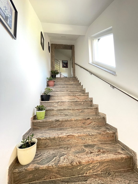 Ob hiši je drugi vhod, ki ima skupno stopnišče za dve ostali stanovanji. Eno stanovanje se nahaja v 1. nadstropju in obsega kuhinjo, dnevno bivalni del z izhodom na balkon (manjšo teraso), spalnico in veliko kopalnico s kadjo. Drugo stanovanje se nahaja v 2. nadstropju, ki prav tako obsega kuhinjo z dnevno bivalnim delom, z izhodom na balkon ki ponuja čudovit in odprt pogled na Ljubljansko barje, spalnico in veliko kopalnico s kadjo.