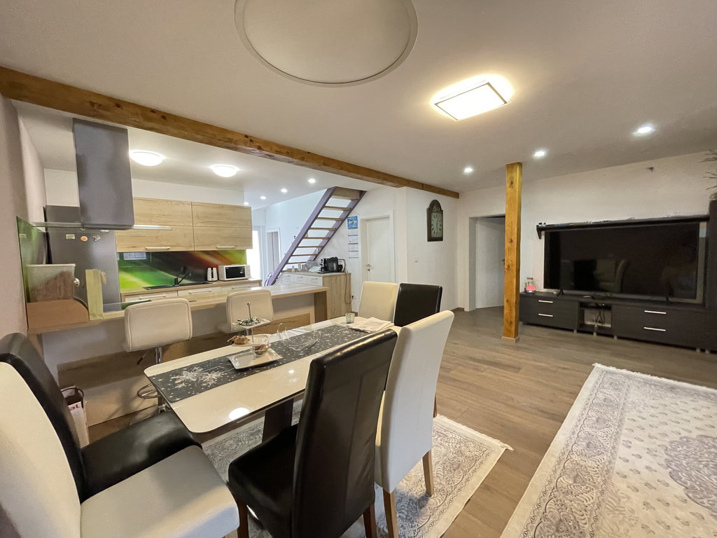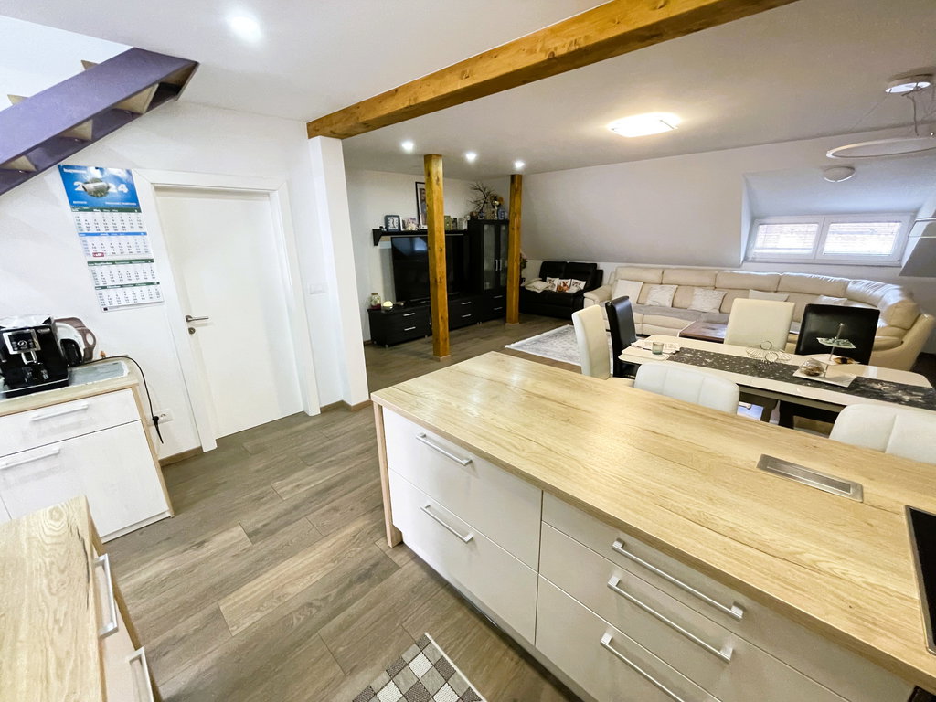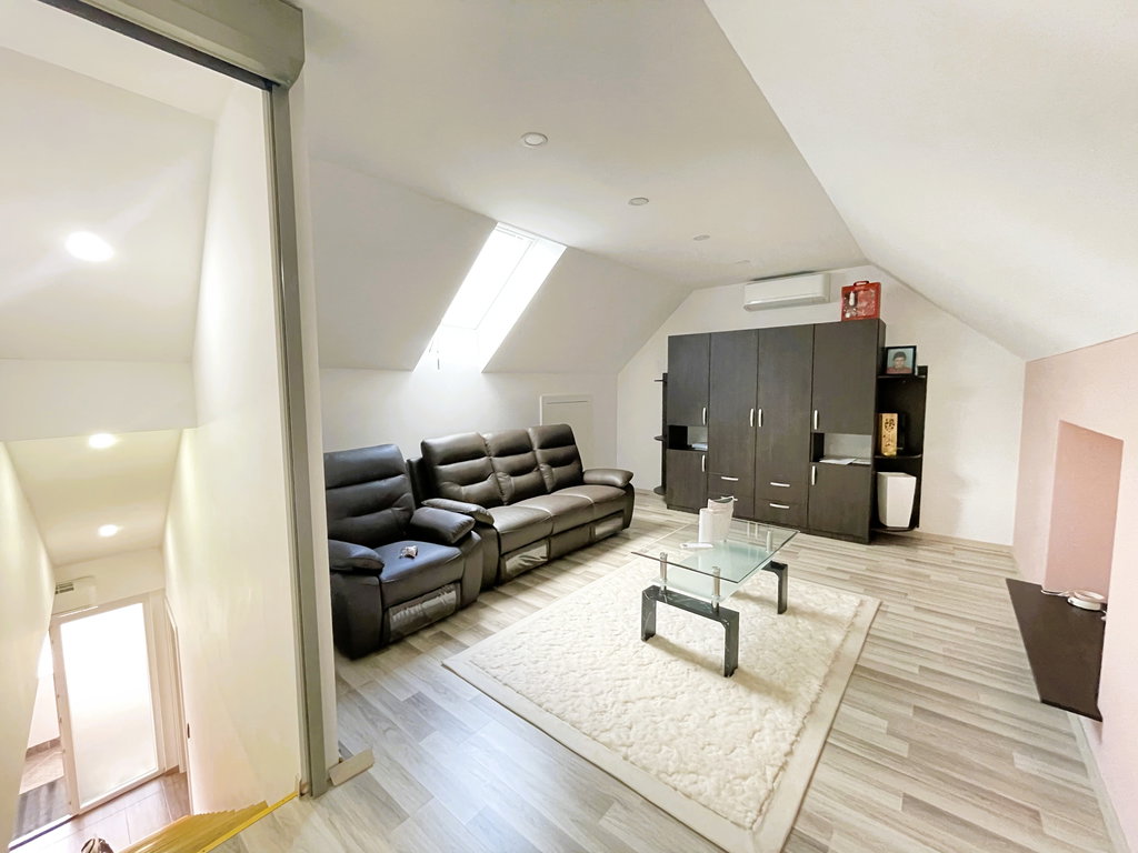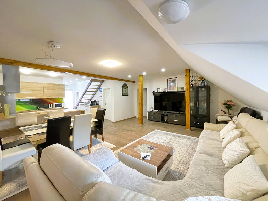 Stanovanje je bilo leta 2020 v celoti prenovljeno. Iz enonivojskega stanovanja je bil preurejen v moderno duplex stanovanje v neto izmeri 174,8 m2, od tega 134, 9 m2 neto uporabne površine in 39,9 m2 zasebna odprta terasa.