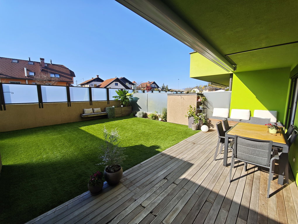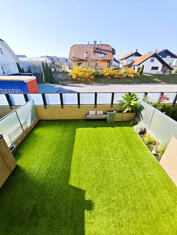 V atriju je bila položena nova umetna trava, na novo prekrita lesena terasa (Itauba dark), novo vrtna garnitura in prebarvan del fasade stavbe.