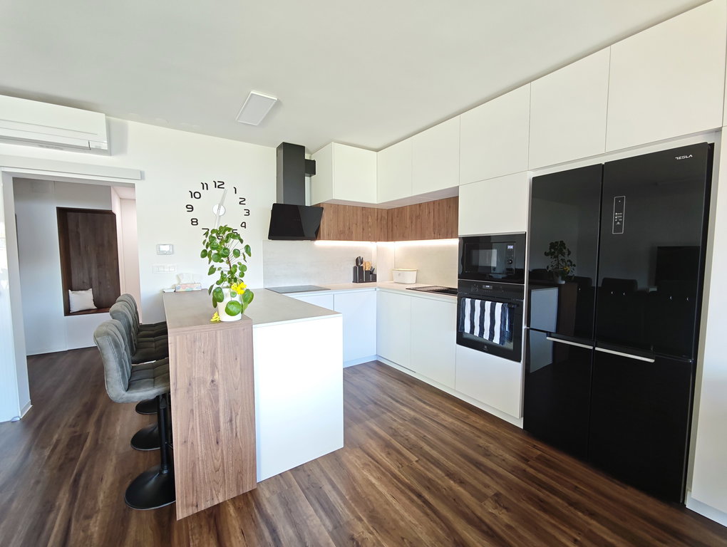 Leta 2024 je bilo pritličje popolnoma adaptirano. Izvedeni so bili novi estrihi, talne obloge (hydrosol v kopalnici + vinil v ostalih prostorih, tudi v nadstropju), talno gretje, nova plinska peč, strojne in elektro inštalacije, nova oprema in po meri izdelano vgradno pohištvo z belo tehniko.